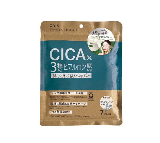 天然100%コットンシートマスク 「CICA×3種のヒアルロン酸」天然100%コットンを使用した、肌にピタッと密着する優しい肌触りのシートマスクです。CICAと3種のヒアルロン酸が潤いを与え、ハリ感のあるみずみずしい素肌へ整えます。