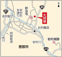 墓標 秘ストリー 女城主の「悲運」伝える 大将陣(恵那市岩村町/戦国時代) 2025年1月12日 12:14 女城主らが葬られたと伝わる大将塚について紹介する羽柴賀透さん。塚の周りには日露戦争や太平洋戦争の忠魂碑なども建てられ、郷土の歴史に思いを寄せる場所になっている=恵那市岩村町 大将陣公園から望む岩村城の城山(中央)=恵那市岩村町 秋山虎繁夫妻の怨霊を鎮めるために建立されたと伝わる妙法寺の「まくら冢」。大将塚の方角を向いている=恵那市岩村町 岩村城の城山 「女城主」は日本酒の銘柄にも使われている=恵那市岩村町、岩村醸造 日本三大山城に数えられる岩村城跡... 残り1741文字(全文:1758文字) この記事をお読みいただくには「デジタルプラン」または「宅配+デジタルプラン」の会員登録が必要です。無料会員の方はログインしてマイページからコース変更してください。デジタルプランまたは宅配+デジタルプランをご登録中の方はログインしてください。 岐阜新聞デジタル会員に登録すると 無料会員向け記事が読める ニュースレターで最新情報が受け取れる デジタルプラン、宅配+デジタルプランなら Webオリジナルコンテンツが読める 紙面ビューアが読める チケットの先行発売に参加できる お得なクーポンが使える 新規登録ページ ログインページ トップ 墓標 秘ストリー 女城主の「悲運」伝える 大将陣(恵那市岩村町/戦国時代) 関連記事 「本能寺」後岐阜で供養 織田信長公父子廟 岐阜市の崇福寺/戦国時代 決戦で散った「義の武将」 大谷吉継(関ヶ原町/戦国時代) 明智光秀「生存伝説」山県に逃げ延びた? 桔梗塚(岐阜・山県市/戦国時代) 郡上一揆命懸けた義民「那比村藤吉」 岐阜県郡上市八幡町/江戸中期 水に沈んだ「生存伝説」 新田義貞 岐阜・揖斐川町(旧徳山村)/鎌倉末期~南北朝期 宝暦治水、難工事で散る 薩摩義士13人の墓(岐阜・海津市南濃町の円成寺/江戸中期) おすすめ記事 明知城跡から定説覆す石垣発見 恵那市の調査、本丸と出丸から 17世紀初頭の改修 岐阜県で今週末どこ行こう?【13、14日】 大野町が小中学校の再編案公表 義務教育学校を導入へ 2メートル選手が「家具役」に!? 岐阜スゥープス×岐阜大高木ゼミ、ショート動画で防災訴え