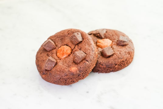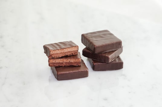 ●タケット薄く伸ばしたココアクッキーに、自家製のプラリネをペースト状にし、2層に重ねました。一口サイズにカットし、セモア社のダークチョコレートをコーティングして贅沢に仕上げました。