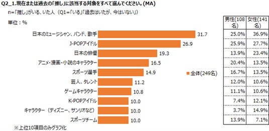 ■男性は「アニメ・漫画・小説」、女性は「日本の有名人」が主な“推し”対象