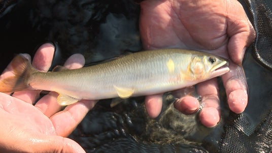 日本を代表する淡水魚が今回のターゲットのアユ。日本を中心に東アジア一帯に生息する。秋に川で生まれた稚アユは、海へと下り、翌年の春に川へと遡上する。仔稚魚の頃はプランクトンなどを常食し、川へと遡上してからは石に付く藻類を主食とするようになる。石に付く藻類を食べることから、質の良い石の周辺を自らの縄張りとし、侵入者に激しく攻撃を仕掛ける。この習性を利用したのが友釣り。1年で一生を終えるため、解禁当初の若いアユから盛期のアユ、産卵を意識した終盤のアユと、季節の進行に伴って、その大きさや味も変わる。また、各河川に繁茂する藻類を食するため、川によって食味も随分とかわり、アユの味を競うイベントも各地で行われている。
