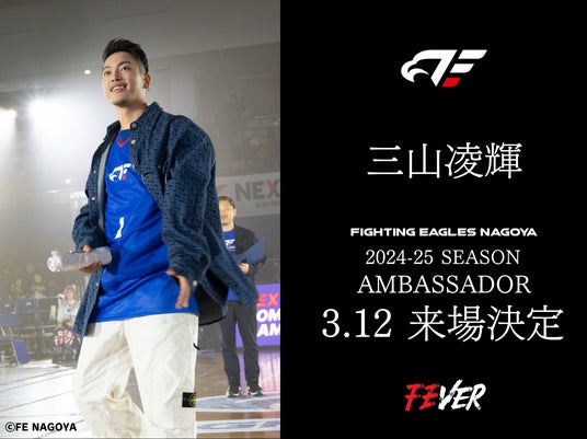 俳優そしてBE:FIRSTのメンバーとしても活躍し、ファイティングイーグルス名古屋(以下、FE名古屋)2024-25シーズン アンバサダーの三山凌輝さんが3月12日(水)名古屋市稲永スポーツセンターにて開催されるホームゲーム アルバルク東京戦に来場することが決定いたしました。