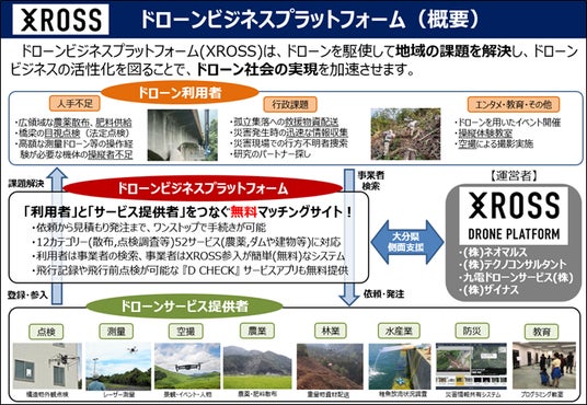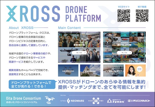ドローン利用者と事業者のマッチングを実現し、ビジネス化を推進するプラットフォーム『ドローンプラットフォーム・クロス(XROSS)』は大分県の支援を受けて令和5年に開設後、全国の自治体に仕組みとシステムを提供し、1年間で6県に拡大しました。