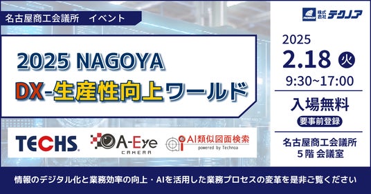 株式会社テクノア(本社:岐阜県岐阜市、代表取締役:山崎 耕治)は、2/18に名古屋商工会議所で開催されるイベント「2025 NAGOYA DX・生産性向上ワールド」に出展いたします。