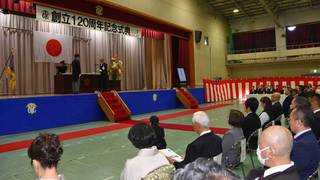 甲子園で春夏連続準優勝した56年のエース清沢忠彦さんの音頭で乾杯し、スピーチや100年の歴史を当時の映像や、OB、歴代監督のインタビューでつづった記念DVDの上映も行われた。