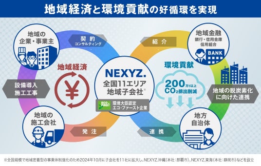 株式会社NEXYZ.は、2012年より初期投資0円で導入可能な設備支援サービス「ネクシーズZERO」を提供し、これまでに10万件を超える導入実績を誇ります。現在、106社を超える銀行・信用金庫との業務提携を実現し、11の地域子会社・36の拠点を基盤として、地域に根ざした事業展開を行っております。関連リリース:「ネクシーズZERO」の金融機関パートナーが100社超え