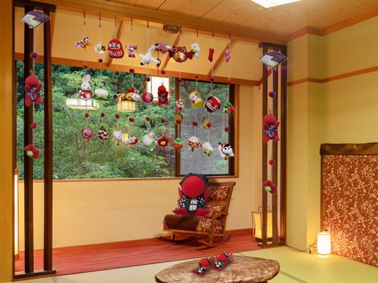 この客室は、飛騨の縁起物である「さるぼぼ」をテーマにデザインされています。