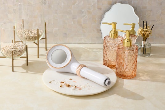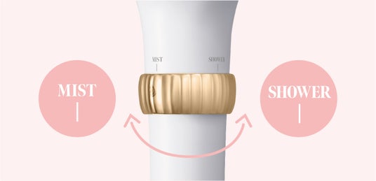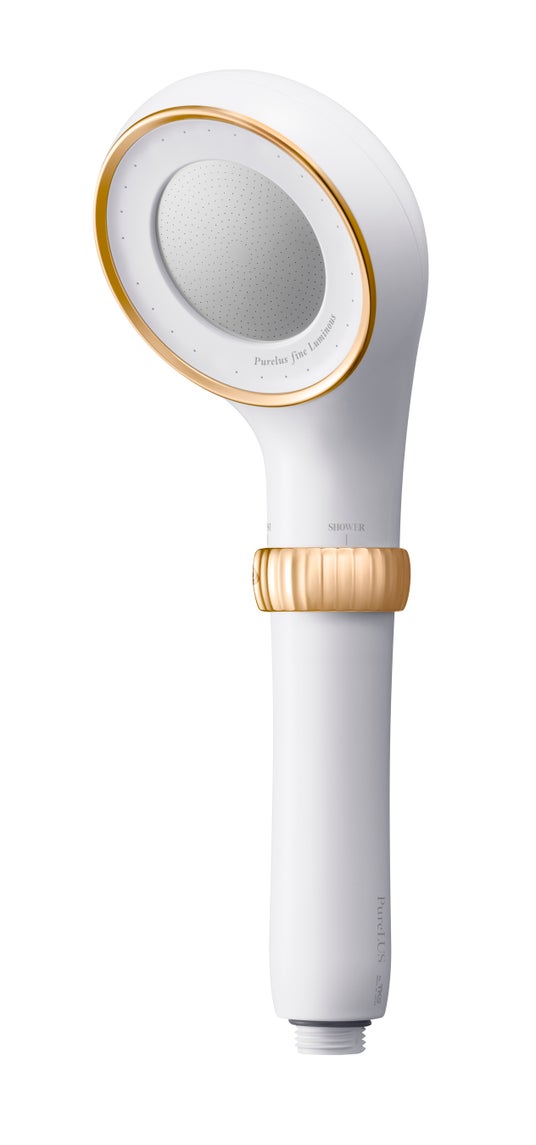 当製品は2024年9月に発売した「ピュアラスファイン」のハイエンドモデルです。「シャワーモード」と「ミストモード」、2つの水流を手元のダイヤルで簡単に切り替えられます。コロンとしたフォルムとホワイト×ピンクゴールドの配色でバスルームが華やぐデザインを目指しました。また、別売の浄水カートリッジ(※2)を使用することで水道水の残留塩素を低減させることも可能です。