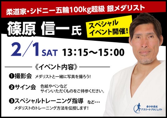 このうちフィットイージー茨木店(大阪府)では、2月1日(土)に柔道家でシドニー五輪100kg超級、銀メダリストの篠原信一氏が来店しイベントを実施いたします。