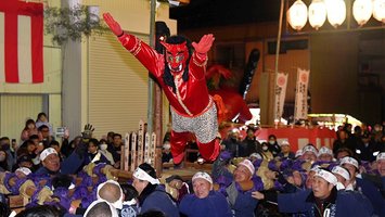 災厄、飛んでけ!節分赤鬼ダイブ 岐阜市で「つり込み祭り」