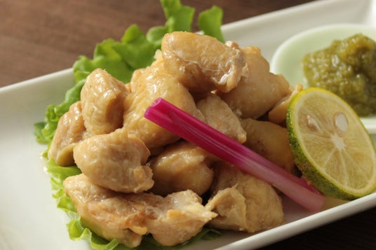 鶏の希少部位であるぼんじりを使用し、脂のりの良い食感を活かしてポン酢でさっぱりと仕上げました。小鉢やお酒のおつまみに適しています。