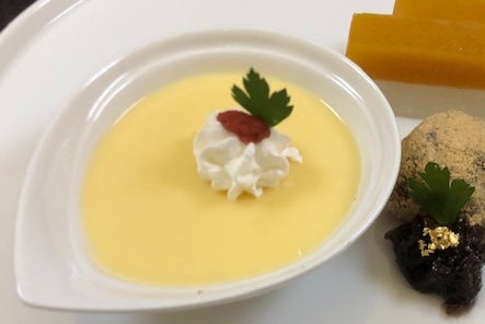 宇治抹茶を使用し、甘さ控えめの小豆と抹茶あんの相性が良い一品です。前菜やデザートとして汎用性が高く、インバウンドにも人気のある和スイーツです。