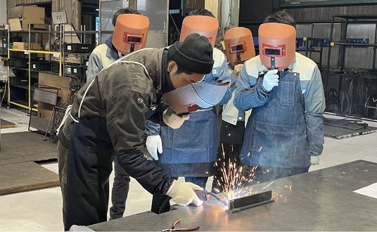 工場見学は保護用のマスクを用いて鉄の切断や溶接を見学できるので、大迫力の職人の技術を間近で見ることができます。