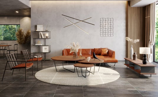 参加者限定 一点もの家具セットの提案イメージ 予算100万円~のイメージ(ソファー、リビングテーブル、チェアー2脚、壁面の棚、窓側のローデスク)