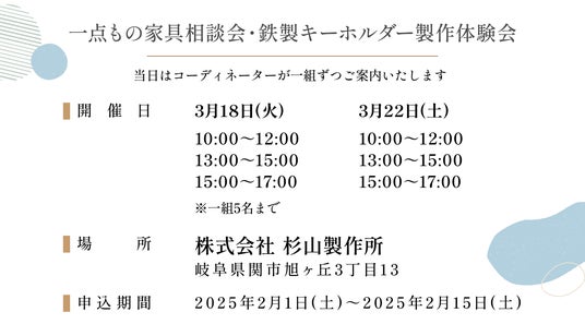 東邦ガス株式会社(代表取締役社長:増田 信之)は、鉄製家具を製作する杉山製作所(代表取締役:島田亜由美)の鉄製家具工場見学と鉄製キーホルダー製作体験のツアーを2025年3月18日(火)と3月22日(土)の2日間限定で募集いたします。