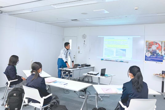 今回の職場体験では、日常生活で当たり前に使っている水について知り、その当たり前を支える仕事について学んでもらうことをテーマにしました。当日は、名古屋市内にある当社中部支店にて実施し、参加した3名の生徒に対し当社グループが手掛ける水処理事業の全体像についてや、水処理施設の建設工事、運転・維持管理の仕事についてなど、実際にその仕事に従事する社員から仕事内容ややりがいについて紹介しました。
