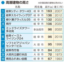 岐阜県内で建物の高層化が進んでいる。鉄道駅周辺の再開発事業により、分譲マンションを備えた高層ビルが増加。県内の建物の高さを調べてみると、再開発ビルと自治体庁舎などの公共施設が上位を占めた。
