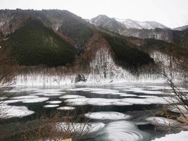 ダム湖に珍景、薄氷に雪の渦巻き 岐阜・高山市「地元民も見たことない」