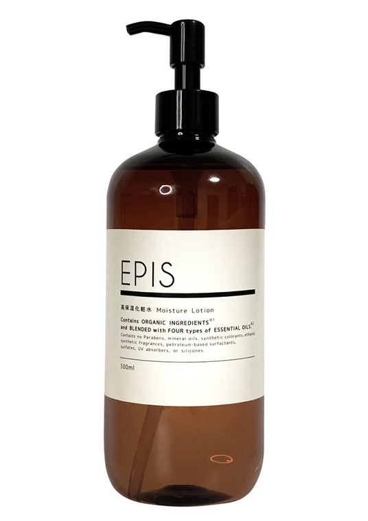EPISモイスチュアローションは、とろシャバ感のあるさっぱりとしたテクスチャーでありながら保湿力もあり、透き通るような美しい素肌へ導く化粧水です。厳選されたオーガニック成分が肌の明るさとツヤ、ハリを感じさせます。