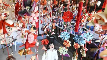 見上げれば、春ゆらり 岐阜・大垣市の墨俣宿一帯「つりびな小町めぐり」