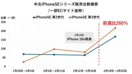 iPhone 16e発表を受けて、iPhoneSEシリーズの販売が好調(ニューズドテック実績)