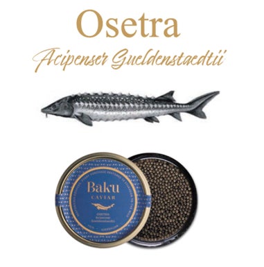 オセトラ(Osetra)ベルーガと並び高い評価を受けるオセトラキャビアは、 ベルーガより小さくセブルーガより大きめの粒で、金色から暗い茶色まで幅広い色合いとプチプチとした食感が特徴です。クラッカーやトーストに添えるほか、サラダやパスタ、寿司など幅広い料理に活用できます。