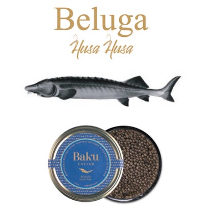 ベルーガ(Beluga)「キャビアの王様」と称されるベルーガは、濃厚でクリーミーな口当たり、芳醇で奥深い味わいが特徴で、舌の上でとろける極上の食感が楽しめます。15~25年の長い成熟期間を経て生産されるため、希少価値が高く、まさに最高級のキャビアです。