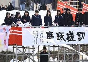 「白線流し」卒業生が誓う永遠の友情 岐阜・高山市の斐太高、戦前から続く伝統行事