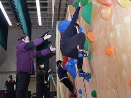 体育館にボルダリング壁 岐阜・金山小、東京五輪メダリストらと交流