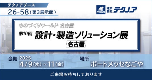 テクノアが出展する「第10回 設計・製造ソリューション展 [名古屋]」 は、CAD、CAE、ERP、生産管理システムなどの製造業向けITソリューションが出展します。