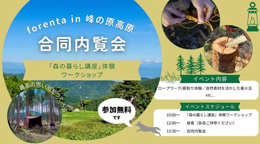 森林レンタルサービス フォレンタ の新エリア「forenta-NAGANO 峰の原高原フォレストフィールド」が長野県須坂市に誕生!合同内覧会の申込受付を開始いたしました。