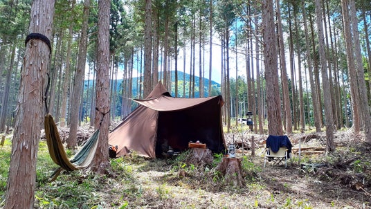 車を横付けできる区画もあり、これからアウトドアを始めたいという方にも使いやすい環境です。ハンモックや焚き火、ブッシュクラフトなど、自然に囲まれながら自分の理想のアウトドアライフを満喫いただければと思います。