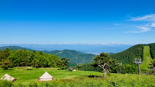 北アルプス・北信五岳を望む標高1,500mの峰の原高原にエリアがあります。夏は非常に涼しく、キャンプなどを通してクールケーションが楽しめ、冬はスキーや、雪に反射する月の光だけで歩く月光散歩やダイヤモンドダストも体験できます。