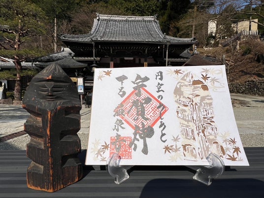 2.温泉寺(下呂市) 宇賀神切り絵御朱印頭が人、身体が蛇である温泉寺所蔵の円空仏「宇賀神」がデザインになった切り絵御朱印をEX旅先予約で先行販売いたします。円空のあしあと・巳年記念にぜひご入手ください。