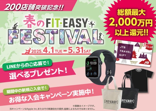 そこで会員様と新規入会者様に日頃の感謝の気持ちをお伝えするため、豪華プレゼントやこのタイミングだけのお得な入会キャンペーンを実施する「春のFIT-EASY FESTIVAL」を開催いたします。