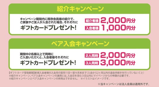 ・新規入会された方:各店舗 キャンペーン期間の各月(4月・5月)先着20名様
