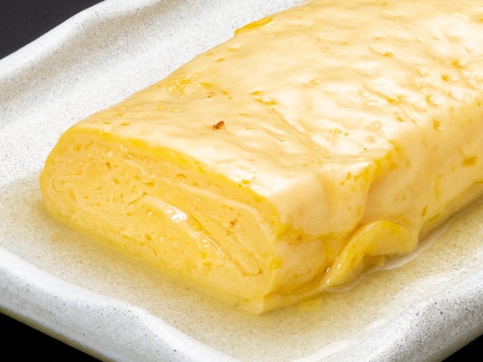 ご注文をいただいてから専用の鉄板で1本ずつ丁寧に焼き上げ。熱々で出汁が染み出す、ジューシーなだし巻き玉子です。