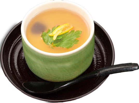 鶏肉、銀杏、しいたけなどが入った出汁のきいた茶碗蒸しに、香りづけの柚子皮と銀餡で口当たり良く上品に仕上げています。
