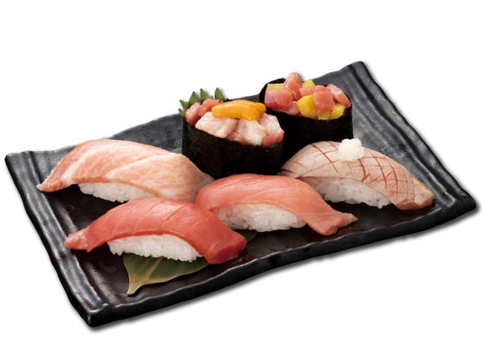 本まぐろの多彩な味わいを楽しむために特別に用意したメニューです。本まぐろの赤身、中とろ、大とろ、炙りとろに、うにを組み合わせた軍艦など、異なる部位を一度に楽しめます。