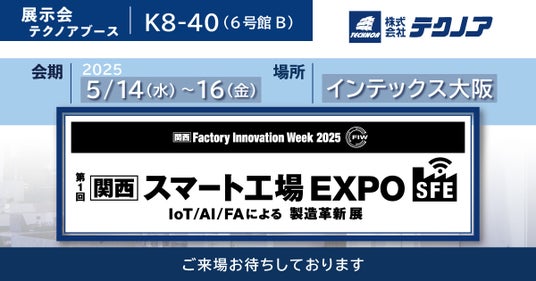株式会社テクノア(本社:岐阜県岐阜市、代表取締役:山崎 耕治)は、5/14~16 にインテックス大阪で開催される「[関西] Factory Innovation Week 2025 」に出展いたします。