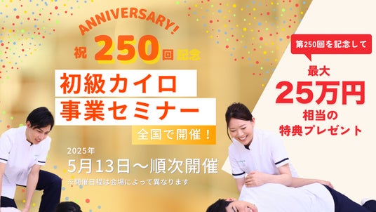 全国でカイロプラクティック技術と事業の基礎を学べる場として、多くの方に支持されてきた、Zenkenkai主催「初級カイロプラクティック事業セミナー(略称:初級セミナー)」が、2025年5月で記念すべき第250回を迎えます。