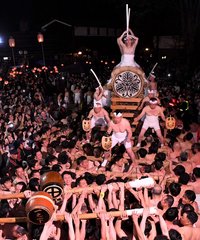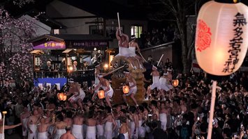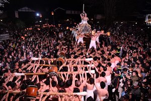起し太鼓に熱狂、飛騨・古川祭が開幕 男たちのもみ合いに歓声