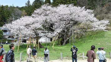 臥龍桜が満開、竜の姿に見惚れる春 圧巻の姿に歓声、見頃は22日ごろまで