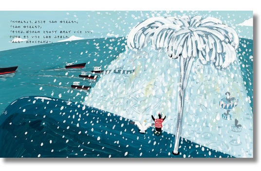 船長に憧れるペンギンのぺぺは、手作りのいかだで海の冒険に出発! ところが次々とアクシデントが起こり、ぺぺの目からは涙がぽろぽろりん。でも涙をふいて進んでいくと、アシカやイルカ、大きなクジラに乗って遊べるゆかいな海の遊園地に到着しました。冒険が終わるころには、ぐっと成長したぺぺ。夏の読み聞かせにぴったりの絵本です。