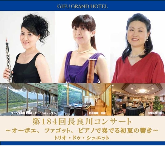 金華山&長良川の美しい風景を眺めながら季節のフランス料理を味わった後、さまざまなジャンルの音楽をお楽しみいただくこのコンサート。今回は、なかなか身近に触れる機会の少ない2つの木管楽器 オーボエ、ファゴットと、ピアノのトリオをお迎えします。