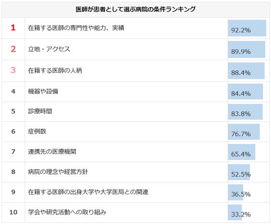 受診先の決め手は?医師が患者として選ぶ病院の条件ランキング―医師1,662名へのアンケート調査より―