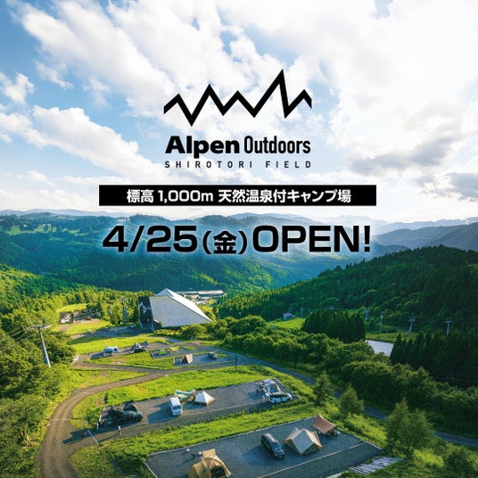 株式会社アルペン(本社:愛知県名古屋市、代表取締役社長:水野敦之)が運営するウイングヒルズ白鳥リゾート(岐阜県郡上市)は、ウインターシーズンの営業終了を受け、2025年4月25日(金)よりキャンプ場「Alpen Outdoorsしろとりフィールド」の営業を開始します。標高1,000mに位置するキャンプ場のサイトは、バリエーションが豊富で、利用者は場内の温泉を何度でも無料で利用することができます。