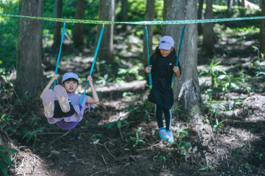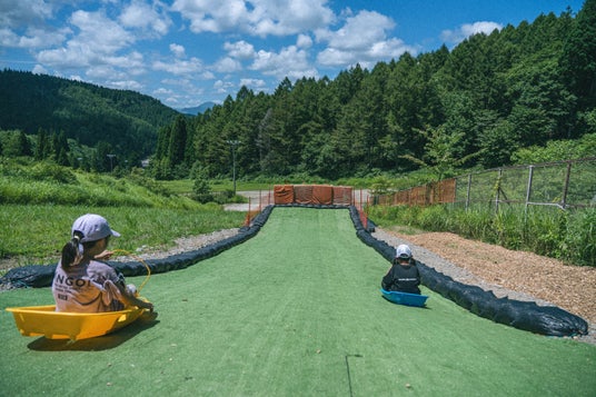 キャンプ場内には、清流での水遊びが楽しめる小川や、ブランコ、ターザンロープ、芝滑りなど、お子様が安全に遊べる多彩なアスレチック施設を完備しています。