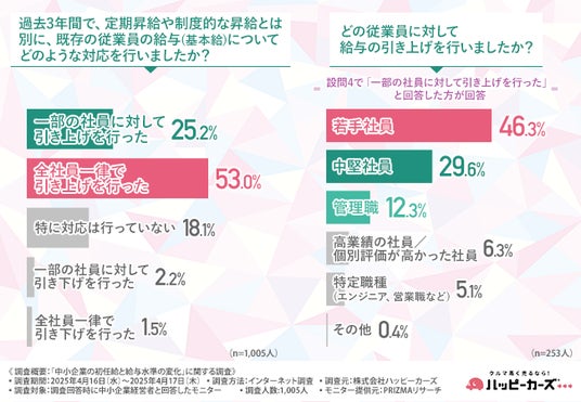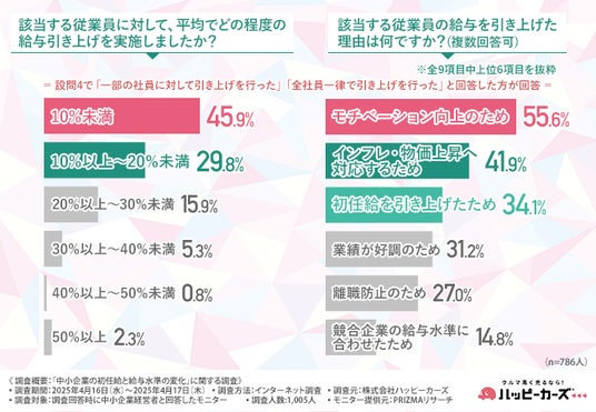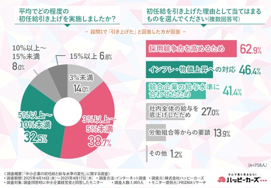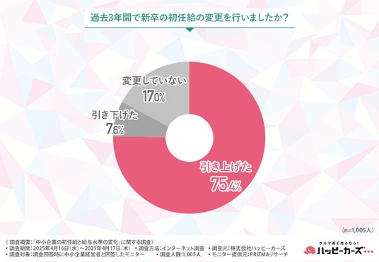 株式会社ハッピーカーズ(本社所在地:神奈川県鎌倉市、代表取締役:新佛 千治)は、中小企業経営者を対象に「中小企業の初任給と給与水準の変化」に関する調査を実施しました。