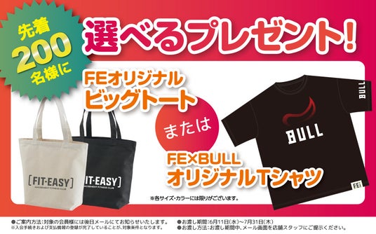 さらに、当店にご入会いただいた先着200名様に「F.Eオリジナル ビックトートまたはF.E×BULL オリジナルTシャツ」をプレゼント!